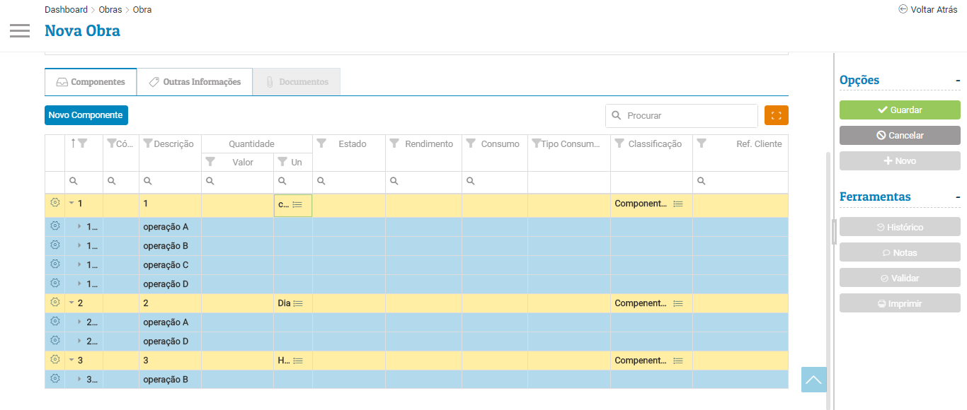 Possibilidade de executar planeamento, através de orçamentação na ficha de obra, onde são considerados todos os custos e tempos, por operação, de qualquer origem.